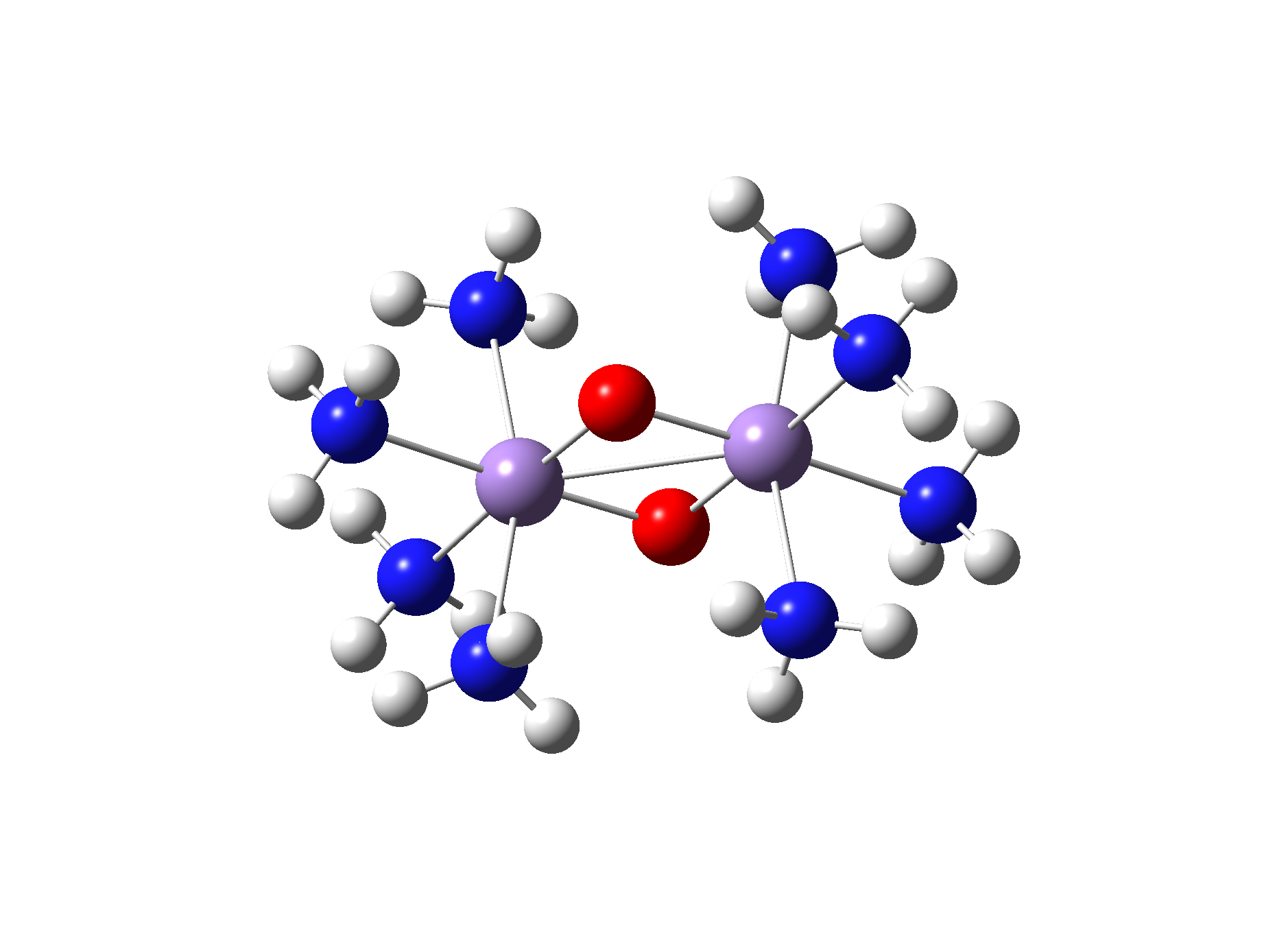 以Gausse View 所繪出的 Mn2O2(NH3)8,後續將以此模型為例子介紹MO及相關應用。